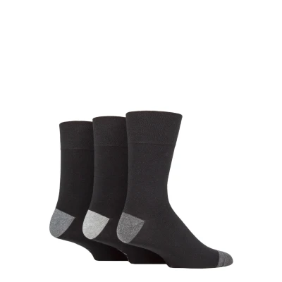 Mens 3 Pair Gentle Grip Cotton Argyle Patterned and Striped Socks Contrast Heel Toe Black 6 11