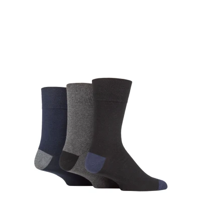 Mens 3 Pair Gentle Grip Cotton Argyle Patterned and Striped Socks Contrast Heel Toe Black / Navy Charcoal 6 11