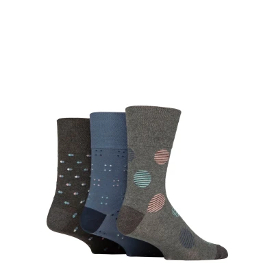 Mens 3 Pair Gentle Grip Cotton Argyle Patterned and Striped Socks Cosmic Neutral Grey / Charcoal Blue 6 11