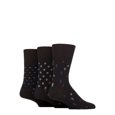 Mens 3 Pair Gentle Grip Cotton Argyle Patterned and Striped Socks Micro Arc Black / Bright Blue 6 11