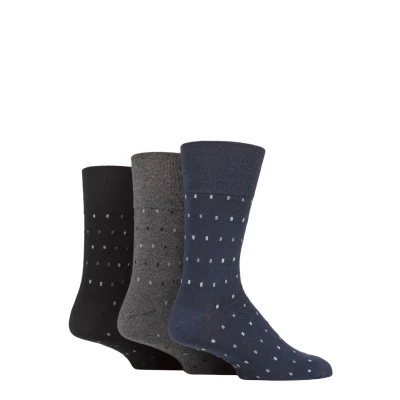 Mens 3 Pair Gentle Grip Cotton Argyle Patterned and Striped Socks Micro Rectangle Black / Navy Charcoal 6 11