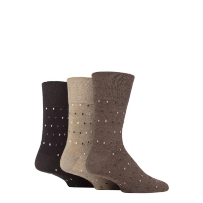 Mens 3 Pair Gentle Grip Cotton Argyle Patterned and Striped Socks Micro Rectangle Brown / Natural 6 11