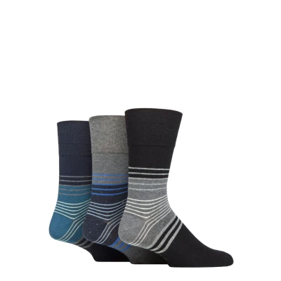 Mens 3 Pair Gentle Grip Cotton Argyle Patterned and Striped Socks Modern Flash 6 11