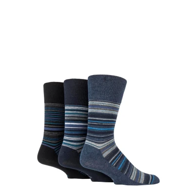 Mens 3 Pair Gentle Grip Cotton Argyle Patterned and Striped Socks Stripe Navy 12 14