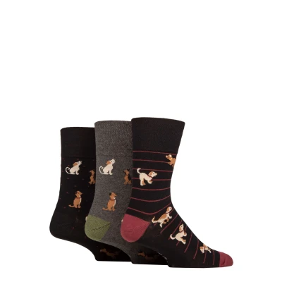 Mens 3 Pair Gentle Grip Fun Feet Socks Team Dog 6 11