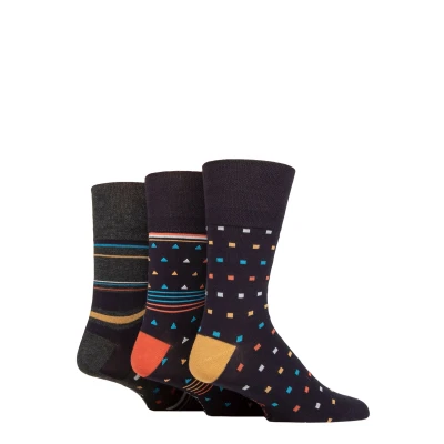 With a choice of twin shade polka dots, triangles or dashes, this triple pack of men’s Gentle Grip Patterned Bamboo Socks will help to put a little pep in your step and style in your shoes. Of course, the main reason for wearing Gentle Grip is their kindness and comfort. The famous HoneyComb Tops hold without restriction or pressure hotspots, using the trademark weave to hold to the contours of your legs in an almost-custom fit, and then stay in place.By using helpful, non-skin-irritating bamboo fibre, comfort is increased for anyone and everyone, as Bamboo is naturally hypoallergenic and antibacterial, so odour is also trampled down, and able to maintain its own steady temperature too. Silky-soft Gentle Grip Patterned Bamboo Socks have strengthened toe and heel areas, plus flat Smooth Linked Toes for smooth seams.