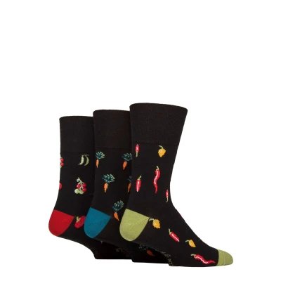 Mens 3 Pair Gentle Grip RHS Royal Horticultural Society Patterned Cotton Socks Vegetables 6 11