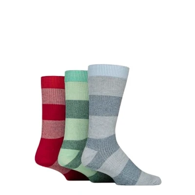 Mens 3 Pair Glenmuir Bamboo Leisure Socks Block Stripes Blue / Green Red 7 11