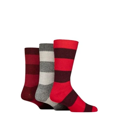 Mens 3 Pair Glenmuir Bamboo Leisure Socks Block Stripes Red 7 11