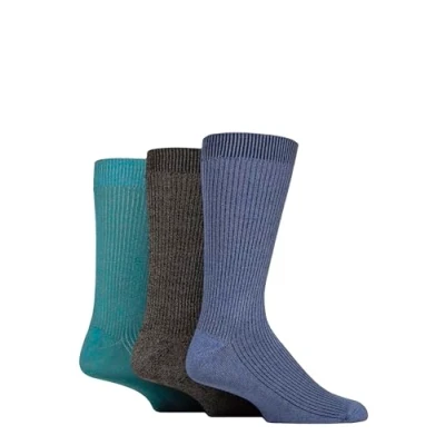 Mens 3 Pair Glenmuir Bamboo Leisure Socks Blue / Black Teal 7 11