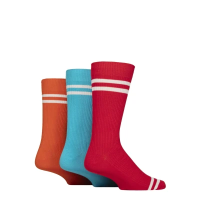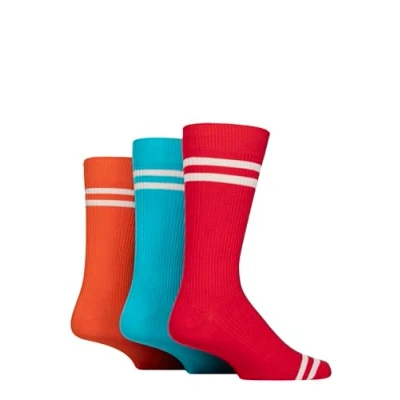 Mens 3 Pair Glenmuir Bamboo Leisure Socks Sports Stripes Red / Orange Blue 7 11