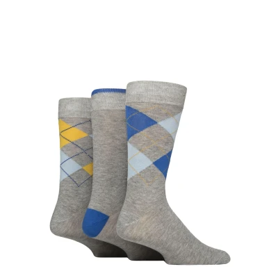 Mens 3 Pair Glenmuir Classic Bamboo Argyle Socks Grey / Blue 7 11