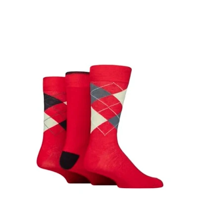Mens 3 Pair Glenmuir Classic Bamboo Argyle Socks Red Charcoal / Mint 7 11