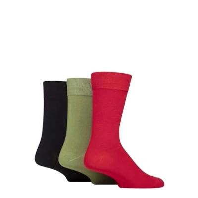Mens 3 Pair Glenmuir Classic Bamboo Plain Socks Red / Green Navy 7 11