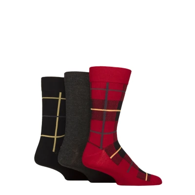 Mens 3 Pair Glenmuir Gift Tagged Patterned Bamboo Socks Red Checker 7 11