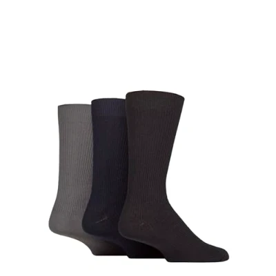 Mens 3 Pair Glenmuir Laird Cotton Ribbed Trouser Socks Black / Navy Grey 7 11