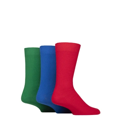 Mens 3 Pair Glenmuir Laird Cotton Ribbed Trouser Socks Red / Blue Green 7 11