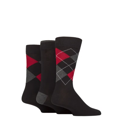 Mens 3 Pair Glenmuir New Waverley Cotton Argyle Patterned and Plain Socks Black 7 11