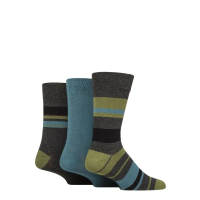 Mens 3 Pair Glenmuir Patterned Bamboo Socks Block Stripes Charcoal 7 11