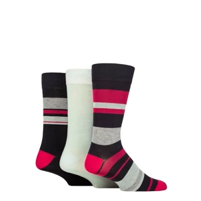 Mens 3 Pair Glenmuir Patterned Bamboo Socks Block Stripes Navy 7 11