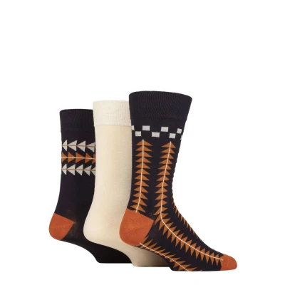 Mens 3 Pair Glenmuir Patterned Bamboo Socks Square and Triangles Navy 7 11