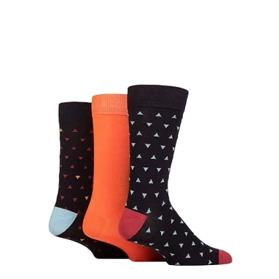 Mens 3 Pair Glenmuir Patterned Bamboo Socks Triangles Navy 7 11