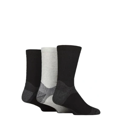 Mens 3 Pair Glenmuir Plain Fully Cushioned Boot Socks Black / Grey 7 11