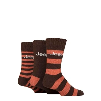 Mens 3 Pair Jeep Striped Wool Blend Thermal Boot Socks Brown / Ochre 6 11