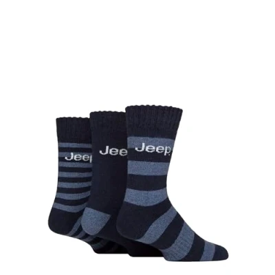 Mens 3 Pair Jeep Striped Wool Blend Thermal Boot Socks Navy / Blue 6 11