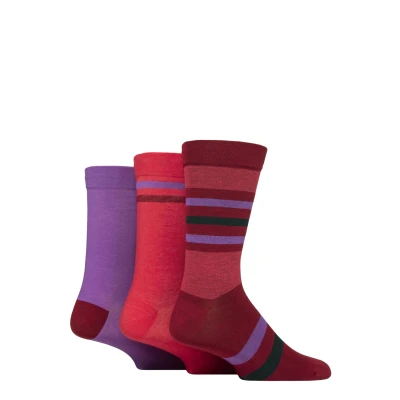 Mens 3 Pair SOCKSHOP Comfort Cuff Gentle Bamboo Striped Socks with Smooth Toe Seams Grape Vine 12 14
