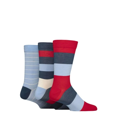 Mens 3 Pair SOCKSHOP Comfort Cuff Gentle Bamboo Striped Socks with Smooth Toe Seams Nautical 7 11
