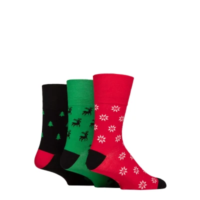 Mens 3 Pair SOCKSHOP Gentle Grip Cotton Christmas Socks Green / Black 6 11