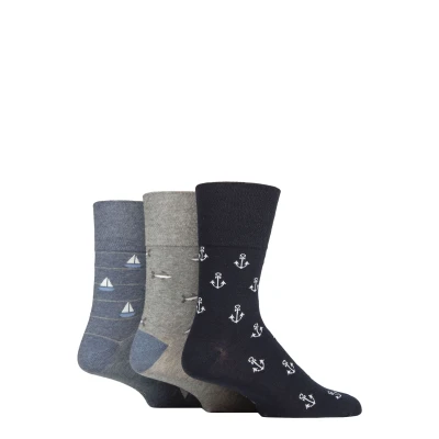 Mens 3 Pair SOCKSHOP Gentle Grip Cotton Holiday Socks Anchor / Boat Shark 6 11