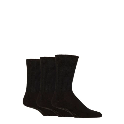 Mens 3 Pair SOCKSHOP IOMI FootNurse Diabetic Slipper Socks Black 6 8.5