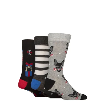 Mens 3 Pair SOCKSHOP Wildfeet Bamboo Christmas Patterned Socks with Gift Tag Dogs 7 11