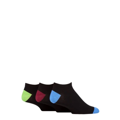 Mens 3 Pair SOCKSHOP Wildfeet Bamboo Trainer Socks Black Blue / Burgundy Green Heel & Toe 7 11