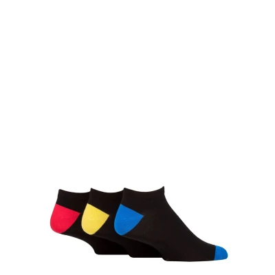 Mens 3 Pair SOCKSHOP Wildfeet Bamboo Trainer Socks Black Blue / Yellow Red Heel & Toe 7 11