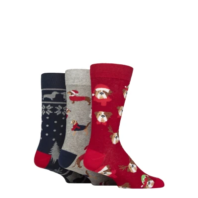 Mens 3 Pair SOCKSHOP Wildfeet Cotton Christmas Gift Socks Festive Dogs 7 11