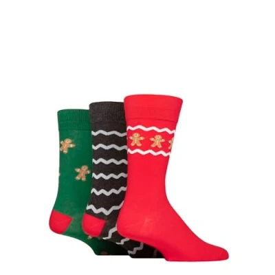 Mens 3 Pair SOCKSHOP Wildfeet Cotton Christmas Gift Socks Gingerbread Man 7 11