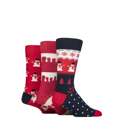 Mens 3 Pair SOCKSHOP Wildfeet Cotton Christmas Gift Socks Snowmen 7 11