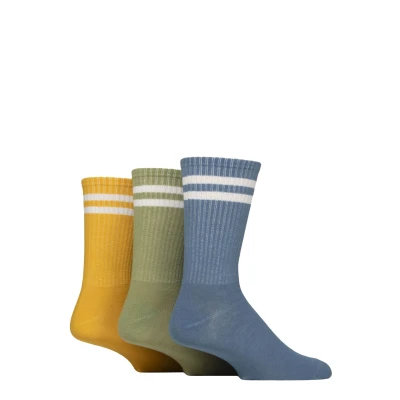Mens 3 Pair SOCKSHOP Wildfeet Cotton Rich Sports Socks Yellow / Green Blue 7 11