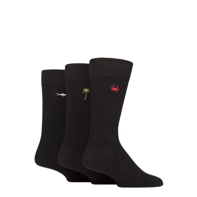 Mens 3 Pair SOCKSHOP Wildfeet Embroidered Socks Crab / Tree Shark 7 11