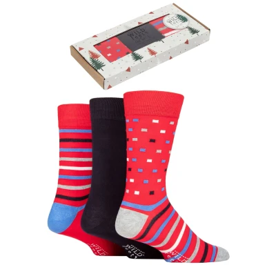 Mens 3 Pair SOCKSHOP Wildfeet Gift Boxed Bamboo Socks Red 7 11