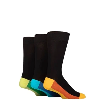 Mens 3 Pair SOCKSHOP Wildfeet Patterned Spots and Stripes Bamboo Socks Footbed Orange / Blue Green 7 11
