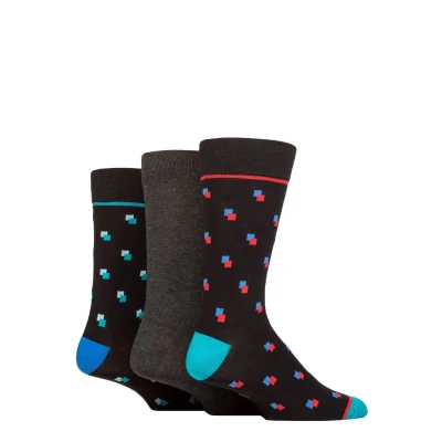 Mens 3 Pair SOCKSHOP Wildfeet Patterned Spots and Stripes Bamboo Socks Square Black 7 11
