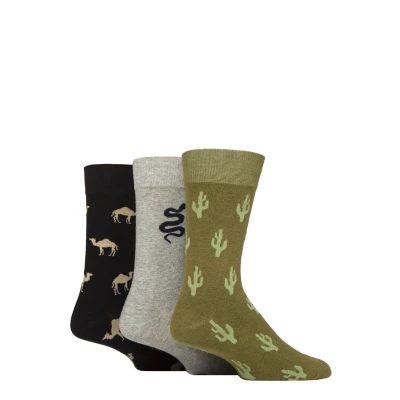 Mens 3 Pair Wildfeet Novelty Patterned Cotton Socks Cactus / Snake Camel 7 11