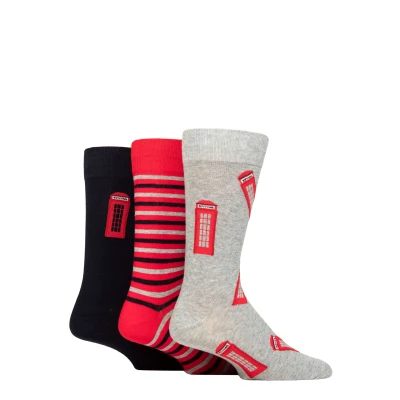 Mens 3 Pair Wildfeet Novelty Patterned Cotton Socks Phone Box 7 11