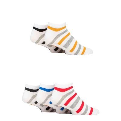 Mens 5 Pair Farah Arch Support Striped Cotton Trainer Socks White Stripe 6 11