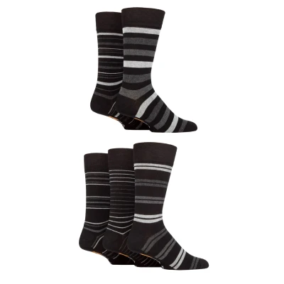 Mens 5 Pair Farah Argyle, Patterned and Striped Bamboo Socks Black / Charcoal Grey Stripe 6 11