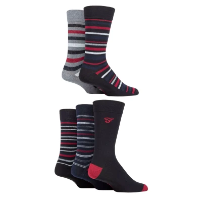 Mens 5 Pair Farah Patterned Striped and Argyle Cotton Socks Stripe Black / Berry 6 11